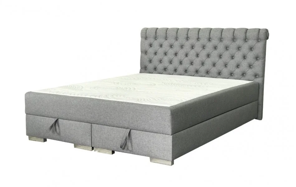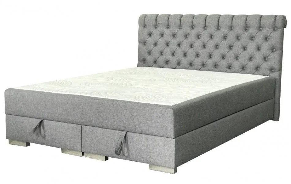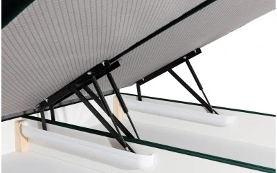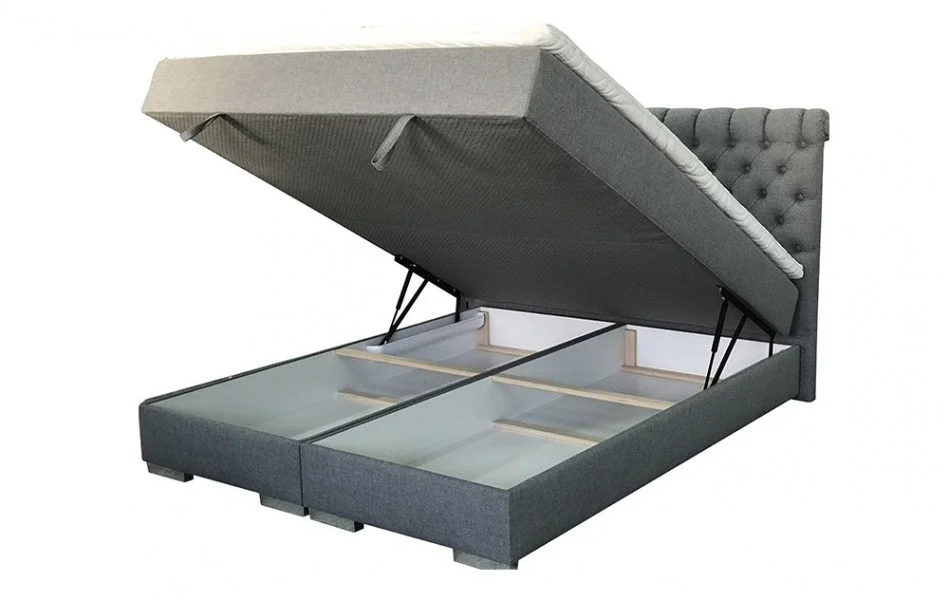 Łóżko kontynentalne Filip 8 wyposażone jest w pojemnik na pościel, zamocowany na siłownikach gazowych. Takie rozwiązane ułatwia korzystanie z pojemnika na pościel, a podniesienie stelaża z materacem nie stanowi problemu.