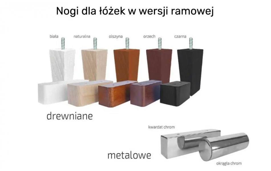 MODYFIKACJE: zmiana wysokości, grubości, szerokości boków i wezgłowia, zmiany nóżek, zmiana ramy na wersję light.
