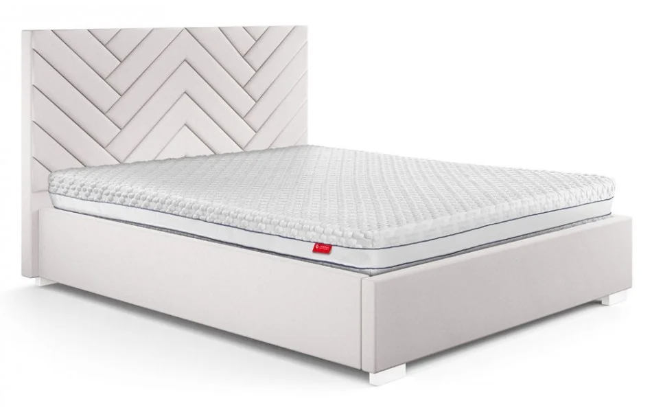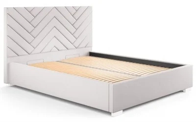 Łóżko tapicerowane Superior przyciąga uwagę eleganckim i wyrazistym wzorem wezgłowia, które doskonale pasuje do nowoczesnych, minimalistycznych wnętrz, gdzie odgrywa główną rolę. Jednocześnie, będzie również świetnym wyborem do sypialni w stylu boho lub klasycznym. Ostateczny efekt zależeć będzie od wyboru tkaniny, ale sam kształt wezgłowia typu jodełka będzie cieszyć oko każdego dnia. Konstrukcję łóżka stanowią tapicerowane boczki umieszczone na eleganckich chromowanych nóżkach, stelaż na metalowej ramie z elastycznymi listewkami oraz pikowane wezgłowie typu jodełka. To połączenie zapewnia nie tylko wygodę, ale także dodaje charakteru i stylu wnętrzu sypialni.
