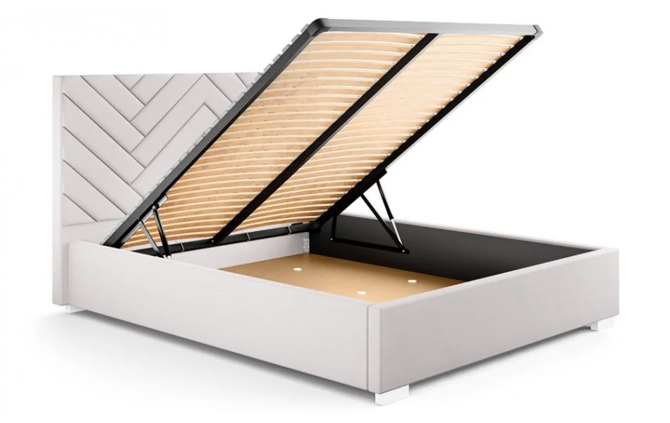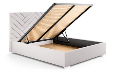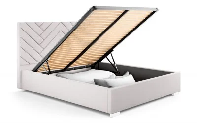 Łóżko Superior z pojemnikiem na pościel to doskonały wybór, dzięki bardzo modnemu wezgłowiu typu jodełka.