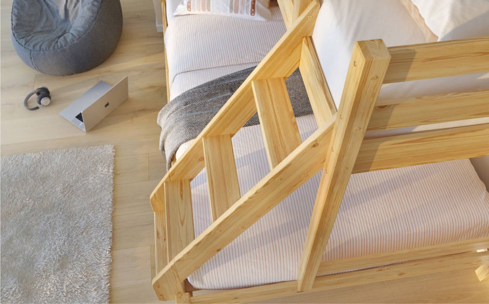 Wysoka barierka łóżka piętrowego zapewnia pełne bezpieczeństwo, zarówno podczas snu, jak i podczas zabaw. Solidna konstrukcja oraz staranne wykonanie materiałów dają pewność, że Twoje dziecko jest odpowiednio zabezpieczone, co pozwala Ci spokojnie spać i być pewnym, że ma ono bezpieczną przestrzeń do snu i zabawy.