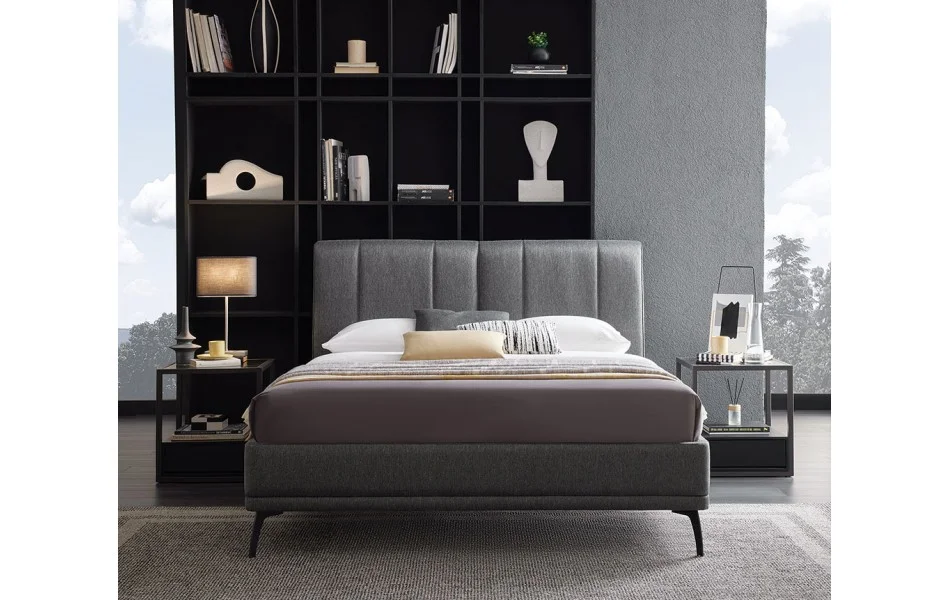 Łóżko tapicerowane Black Ice to propozycja dla osób szukających nowoczesnego i funkcjonalnego rozwiązania do swojej sypialni. Dzięki prostemu, eleganckiemu wezgłowiu oraz wysokim metalowym nóżkom, łóżko wpasuje się w każdy nowoczesny wystrój, a jednocześnie oferuje wygodę użytkowania.