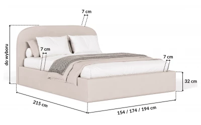 ● długość: 215 cm, szerokość: 154 cm, powierzchnia spania: 140x200 cm,