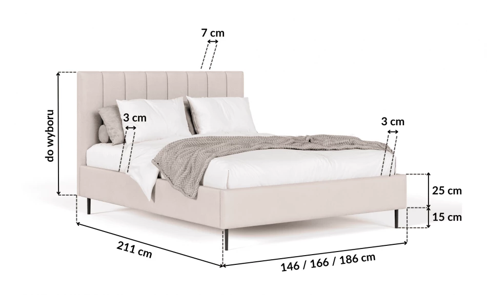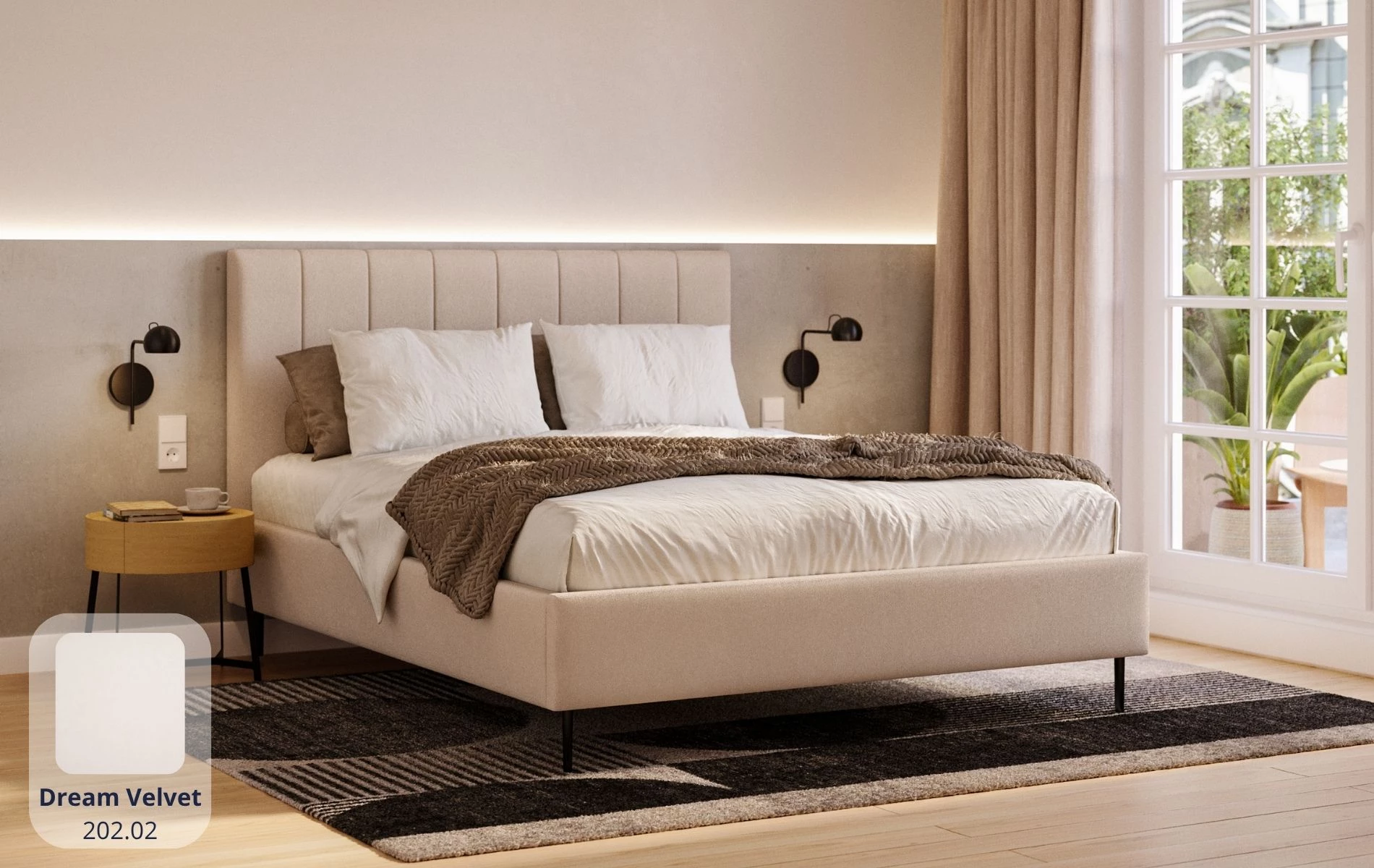 Dzięki prostemu konfiguratorowi stworzysz swoje wymarzone łóżko w kilka chwil. Wybierz kolor i rodzaj tkaniny. Określ wysokość wezgłowia - pozwoli Ci to dopasować łóżko w mniej ustawnej przestrzeni lub zapewnić sobie wygodne oparcie w czasie wieczornego relaksu.