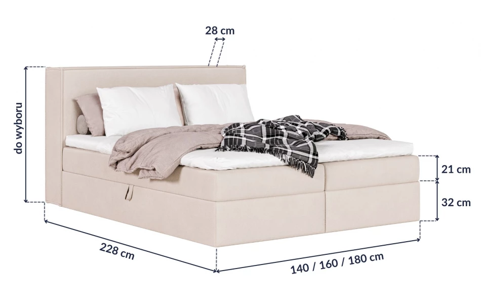 Komfortowa konstrukcja typu boxspring - podwójna warstwa materacy zapewnia optymalne podparcie i wygodę przez całą noc: