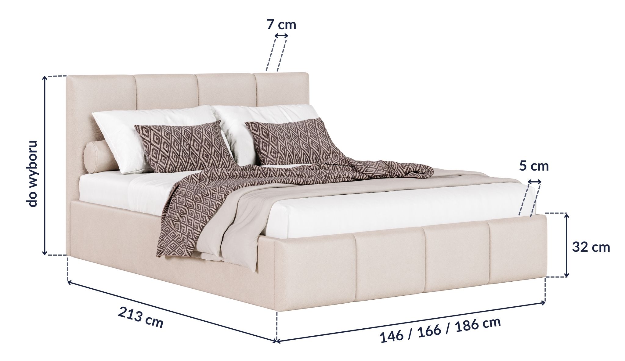 ● długość: 213 cm, szerokość: 146 cm, powierzchnia spania: 140x200 cm,