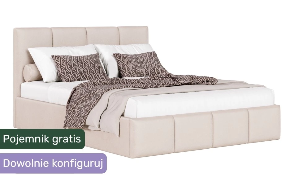 Nowoczesne łóżko LYRA przyciąga uwagę miękkimi liniami i efektownym pikowaniem wezgłowia oraz frontu, tworząc przytulną atmosferę w każdej sypialni. Wbudowany pojemnik na pościel i elastyczny stelaż na metalowej ramie stanowią kompletny zestaw, który zapewnia wygodę i funkcjonalność na co dzień.
