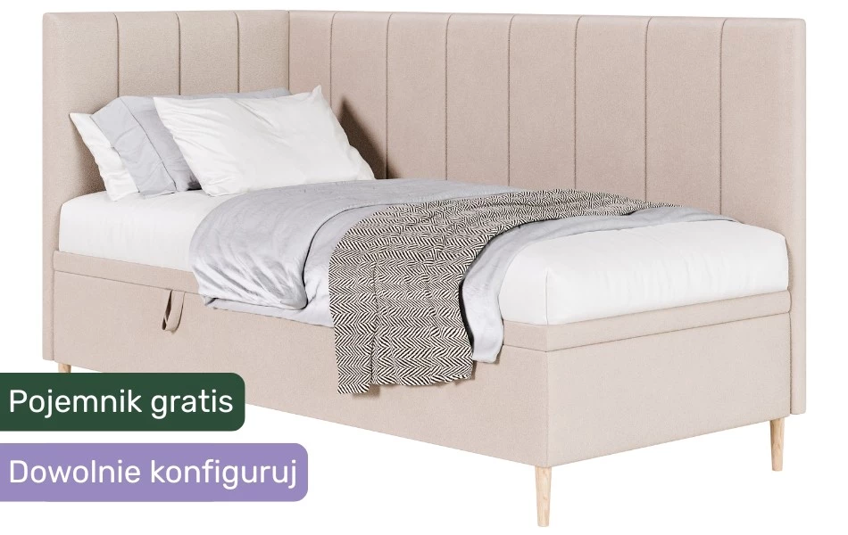 KOMPLETNY ZESTAW - Łóżko jest w zestawie z pojemnikiem na pościel i stelażem.