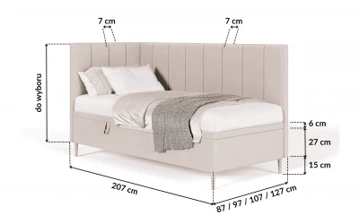 Łóżko jednoosobowe ATLAS to eleganckie łóżko tapicerowane na nóżkach, z pojemnym schowkiem na pościel i bocznym mechanizmem otwierania, który ułatwia codzienne korzystanie. Miękkie, tapicerowane wezgłowie zapewnia wygodne podparcie w trakcie czytania lub oglądania telewizji. To kompaktowe rozwiązanie idealne także do mniejszych wnętrz.