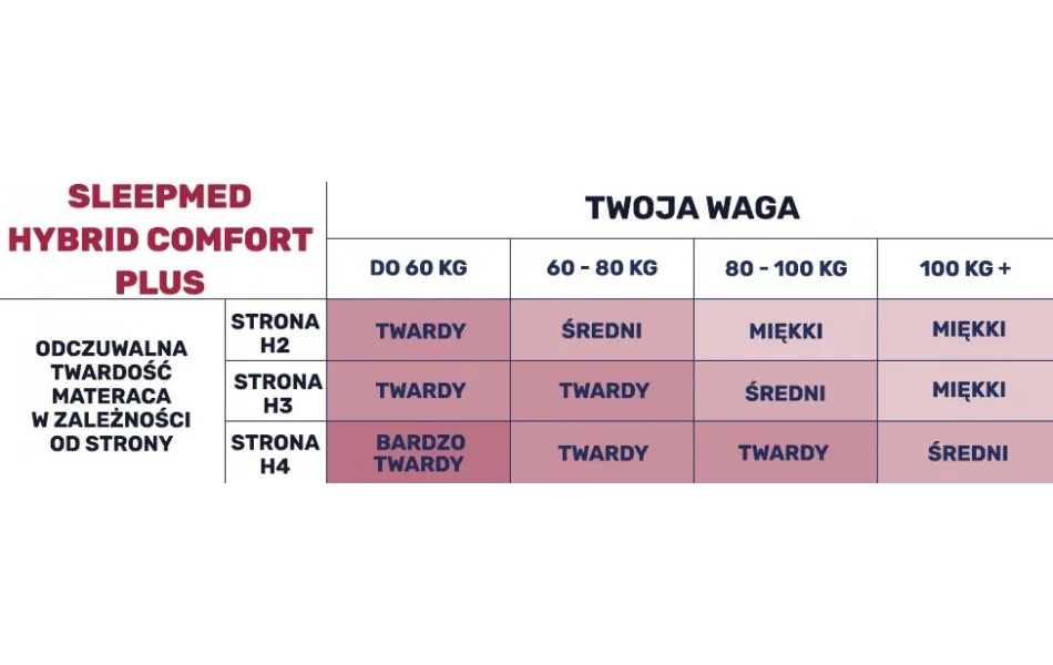 Wysokoelastyczna pianka Hard (3 cm) w kolorze szarym z wkładem sprężynowym bez topu zapewnia doskonałą elastyczność punktową i podparcie. Strona dedykowana osobom cięższym o wadze powyżej 120 kg.