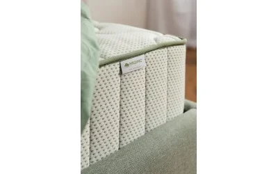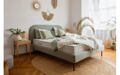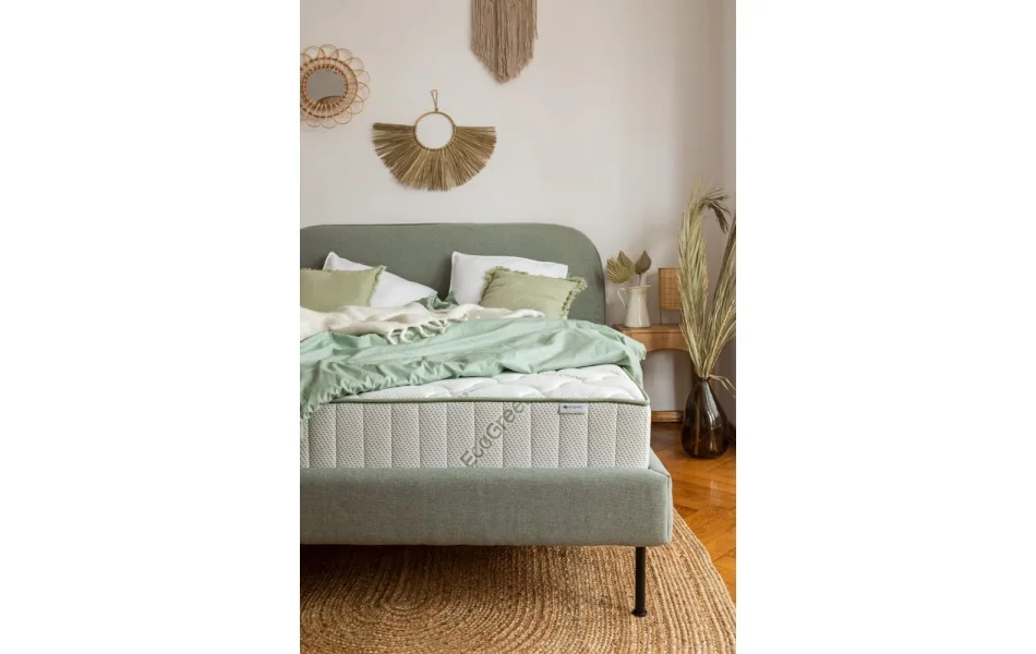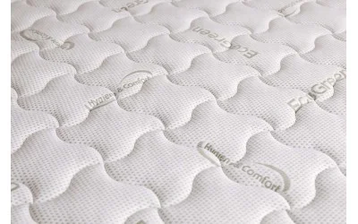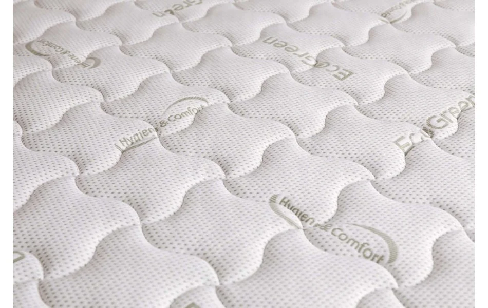 Pokrowiec EcoGreen- bardzo puszysty pokrowiec EcoGreen w 100% do ponownego recyklingu (przędza 100% odnawialna)! Pokrowiec zawiera wyłącznie atestowane surowce najwyższej jakości. Antyalergiczna tkanina, bardzo gruba przepikowana nadaje optymalnej puszystości i miękkości. Gwarantuje wysoki stopień elastyczności, dzięki czemu każdorazowo dopasowuje się do ułożenia ciała na całej powierzchni materaca. Wysoka jakość i trwałość zapewniają komfortowy i głęboki sen przez cały okres użytkowania. Pokrowiec wyposażony w dodatkowe uchwyty, dzięki którym łatwo przenieść lub obrócić materac. Można go bez problemu zdjąć i wyprać w pralce w temp do 60°C.