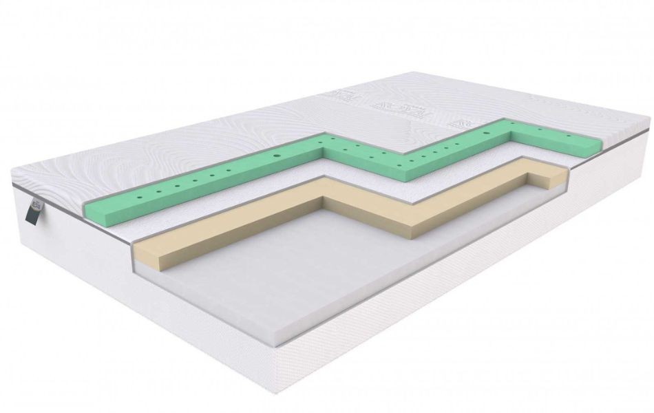- dolna część składa się z dwóch warstw pian: 16 cm pianki nośnej oraz pianki termoelastycznej reagującej na temperaturę ciała,