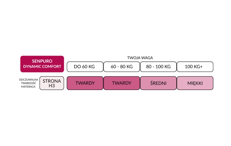 - • materac dwustronny - obie strony użytkowe o jednakowej twardości H3,