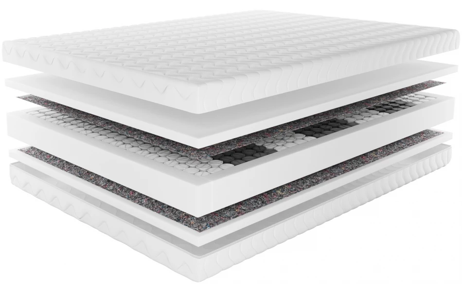 Po obu stronach rdzenia zastosowano warstwy odpornej na odkształcenia, komfortowej pianki poliuretanowej Support White o grubości 4 cm. Pianka ta zwiększa komfort snu, skutecznie amortyzując nacisk. Konstrukcję wzmocniono przekładkami z filcu, które stabilizują materac i oddzielają piankę od sprężyn, co znacząco zwiększa trwałość i odporność na intensywne użytkowanie. Symetryczna budowa wkładu umożliwia regularne obracanie materaca, co pozwala zachować jego właściwości przez długi czas.