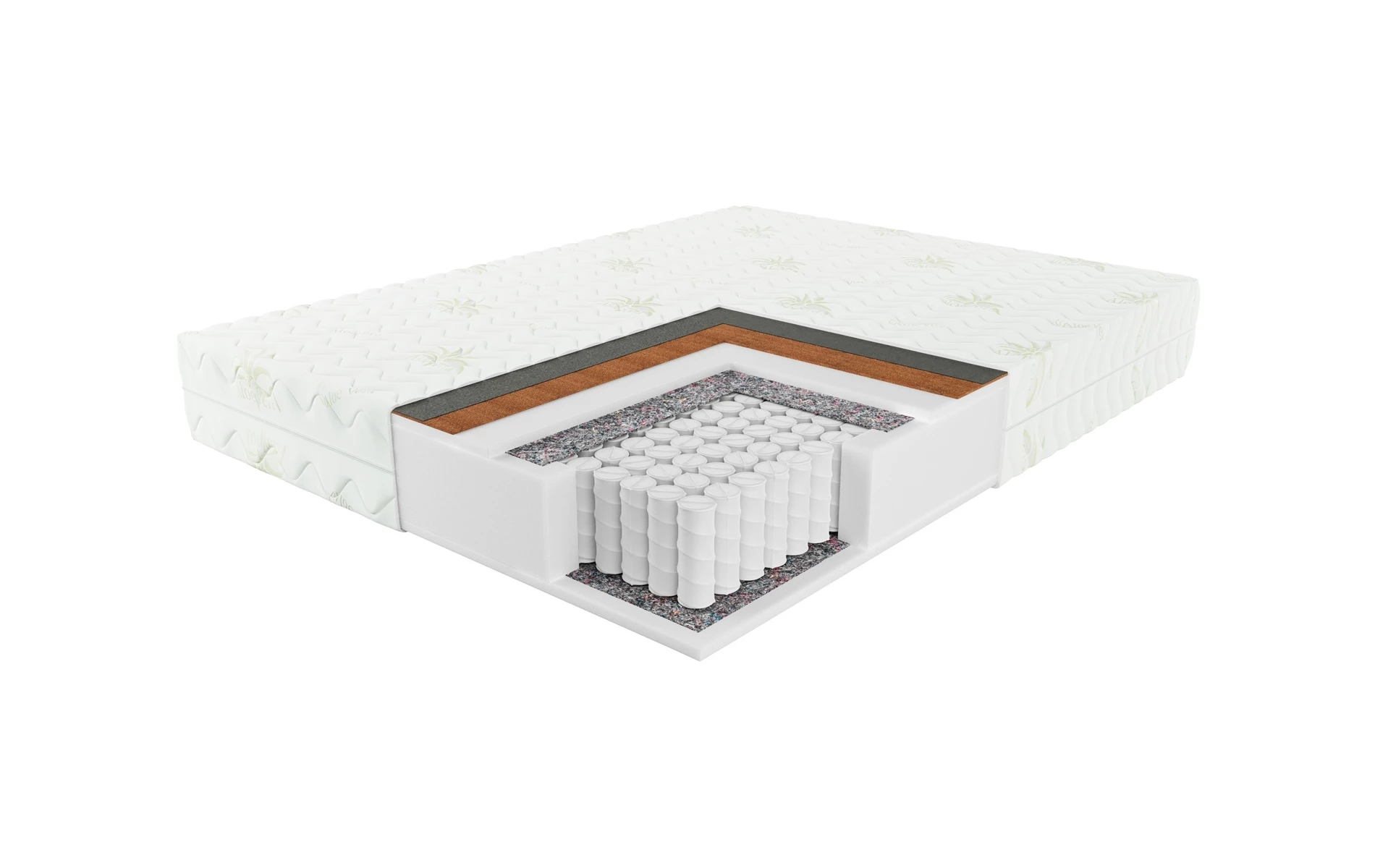 7-strefowy materac sprężynowy stworzony dla osób, które cenią sobie naturalne rozwiązania, stabilne podparcie i wyjątkową trwałość. Połączenie naturalnego wkładu kokosowego, elastycznych pianek PU oraz niezależnych sprężyn kieszeniowych gwarantuje ergonomiczne podparcie całego ciała, wysoką odporność na odkształcenia i higieniczne warunki snu przez długie lata. Idealny dla osób śpiących zarówno na plecach, boku, jak i brzuchu.