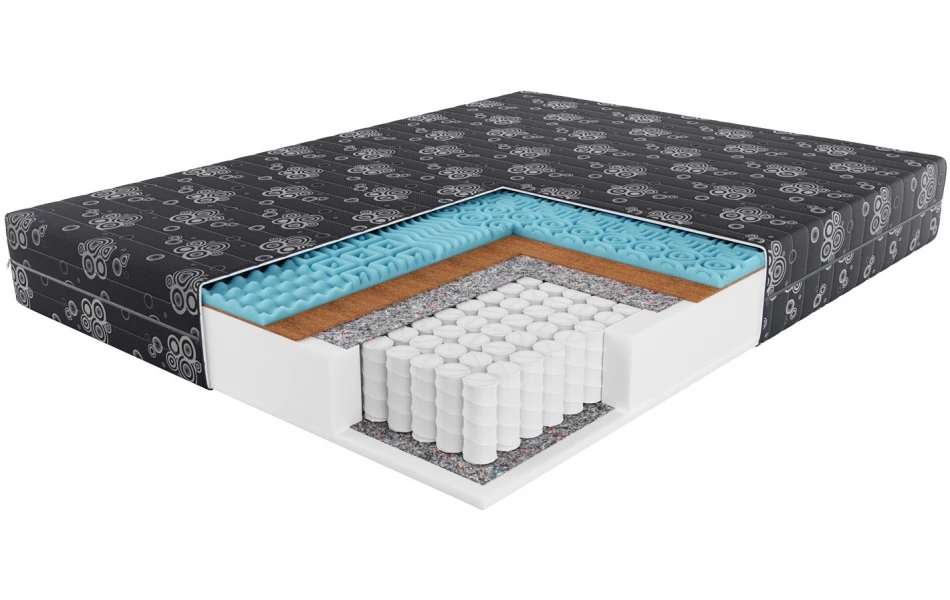 7-strefowy materac sprężynowy zaprojektowany dla osób, które oczekują solidnego podparcia, elastycznego komfortu i trwałości na lata. Warstwa naturalnego kokosu, profilowana pianka wysokoelastyczna oraz odporna na odkształcenia pianka poliuretanowa, w połączeniu z niezależnymi sprężynami kieszeniowymi, tworzą konstrukcję, która ergonomicznie dopasowuje się do ciała, zapewniając stabilność, przewiewność i higieniczne warunki snu przez wiele lat. To idealny wybór dla osób śpiących na plecach, boku i brzuchu.