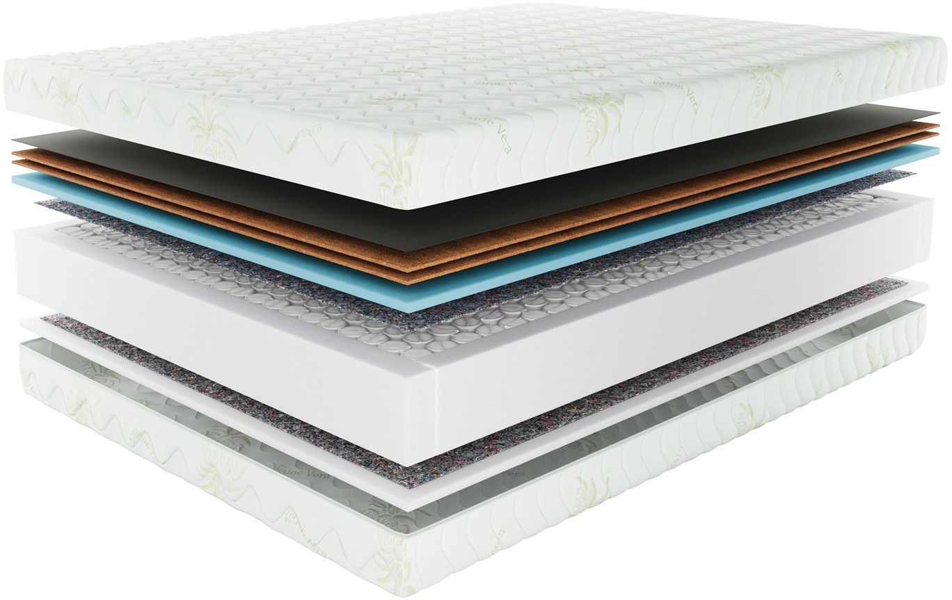 Po jednej stronie rdzenia znajdują się dwa naturalne wkłady kokosowe osłonięte tkaniną, które znacząco zwiększają twardość i stabilność powierzchni, poprawiają cyrkulację powietrza wewnątrz materaca oraz wykazują naturalne właściwości antyalergiczne i antygrzybiczne. Bezpośrednio po nimi umieszczono warstwę wysokoelastycznej pianki Flex o grubości 2 cm, która zapewnia sprężystość, odpowiednie dopasowanie do kształtu ciała oraz zwiększa komfort użytkowania.