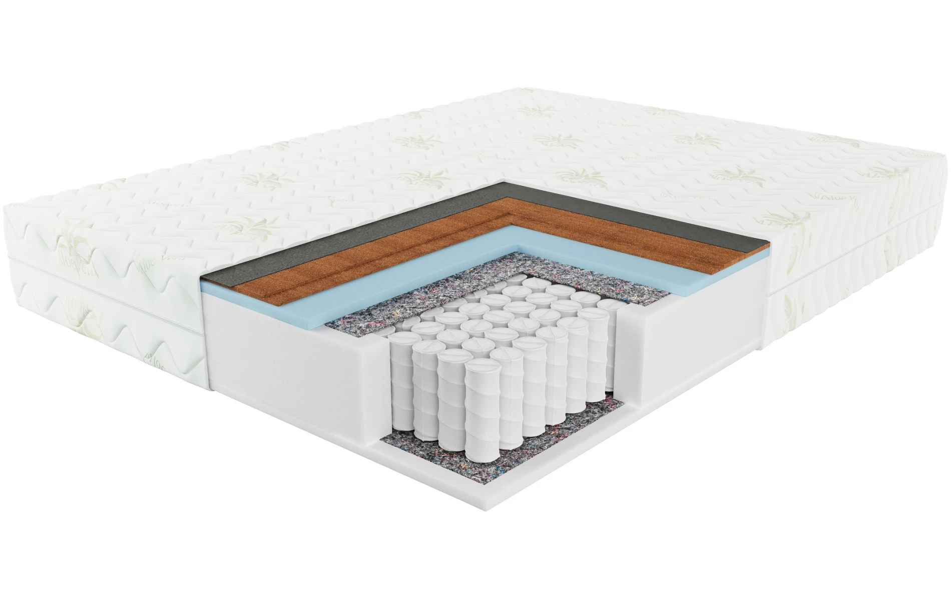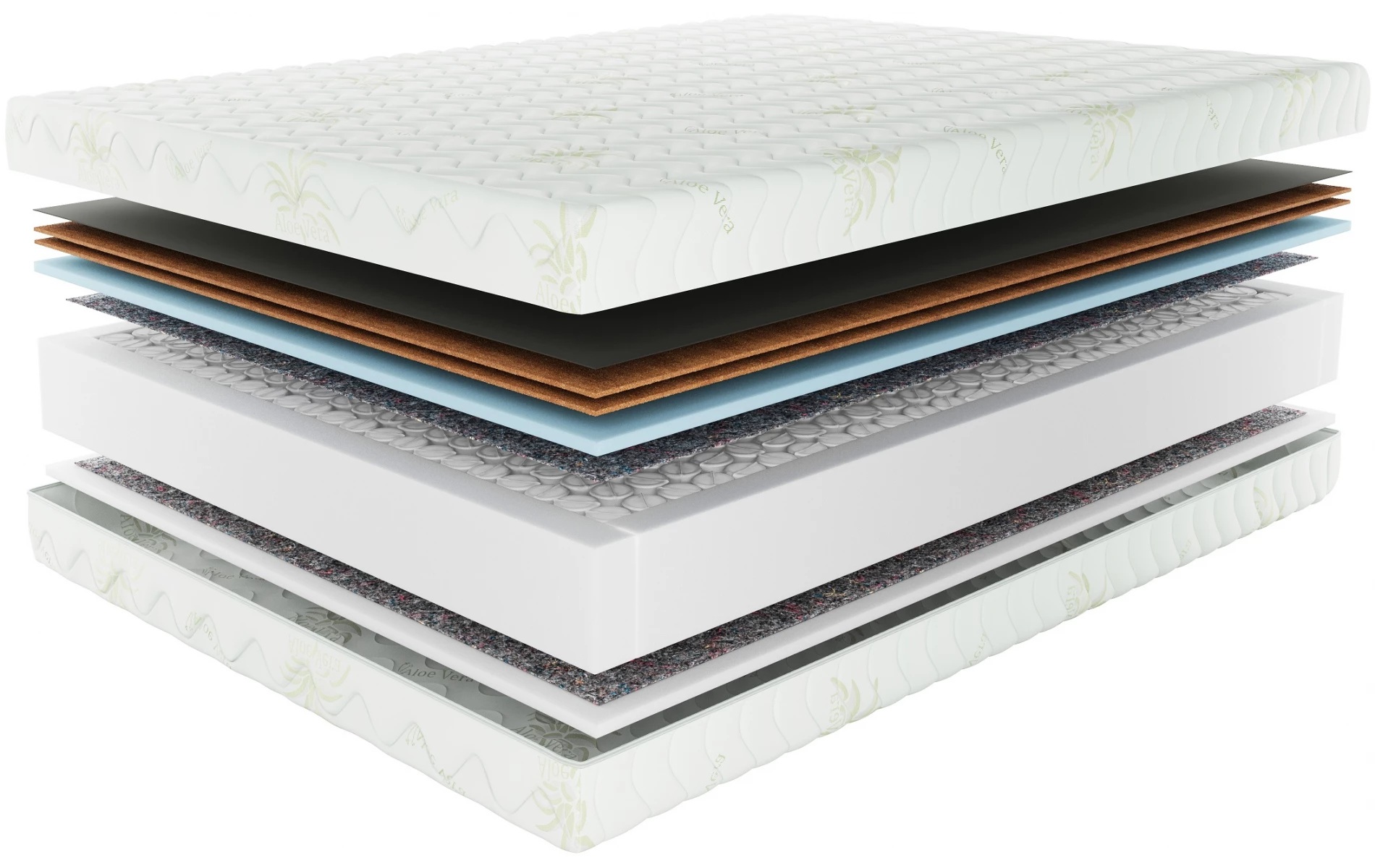 Pokrowiec Aloe Vera: uszyty z miękkiej dzianiny Jersey w subtelnym, ciepło-zielonym odcieniu. Jest przyjemny w dotyku, antyalergiczny i pikowany watoliną o gramaturze 150 g, co zapewnia dodatkową miękkość i komfort. Od spodu został podszyty trwałą flizeliną, dzięki czemu zachowuje stabilny kształt przez długi czas. Jego wyjątkowość polega na nasączeniu ekstraktem z liści aloesu, który korzystnie wpływa na mikrokrążenie, działa kojąco na skórę i tworzy przyjazne środowisko do snu. Pokrowiec wyposażono w zamek błyskawiczny, co pozwala łatwo zdjąć go z materaca i wyprać w temperaturze do 30°C, utrzymując higieniczną świeżość na co dzień.