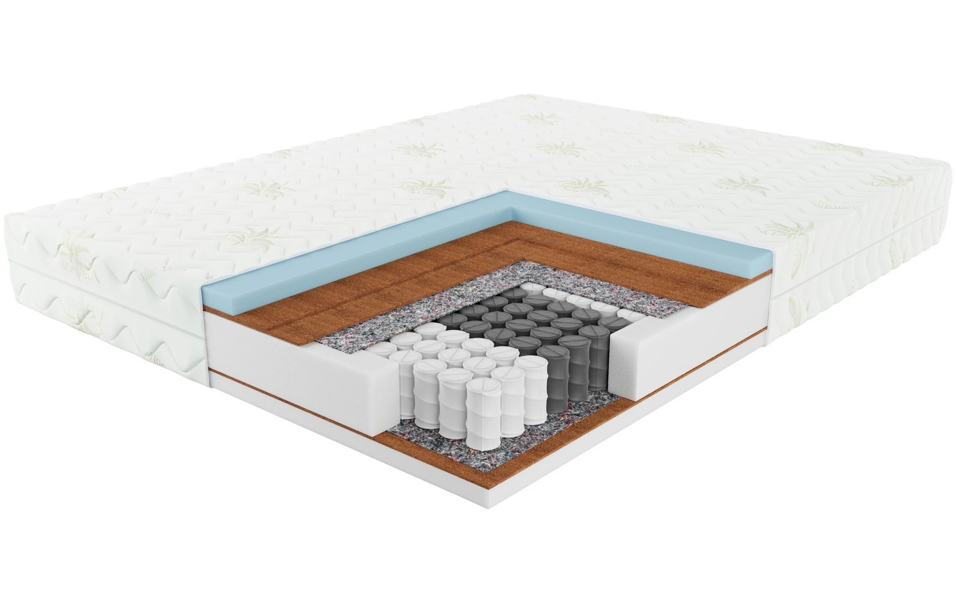 • trzy naturalne wkłady kokosowe - wykonane z włókien kokosowych lateksowanych mleczkiem kauczukowym, zwiększają twardość, trwałość i przewiewność materaca,