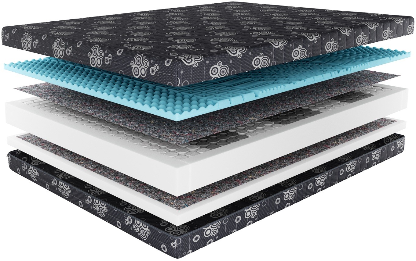 Po jednej stronie rdzenia umieszczono wysokoelastyczną, profilowaną piankę Flex o grubości 4 cm, która zapewnia komfort oraz delikatny efekt masażu, wspierając regenerację mięśni podczas snu.