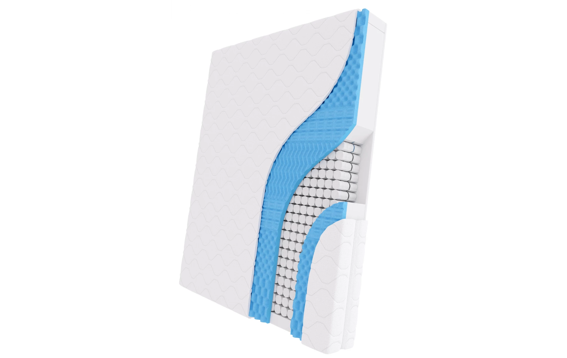 - Profilowana pianka Multizone o grubości 4 cm, która zapewnia komfort oraz delikatny efekt masażu, wspierając regenerację mięśni podczas snu.