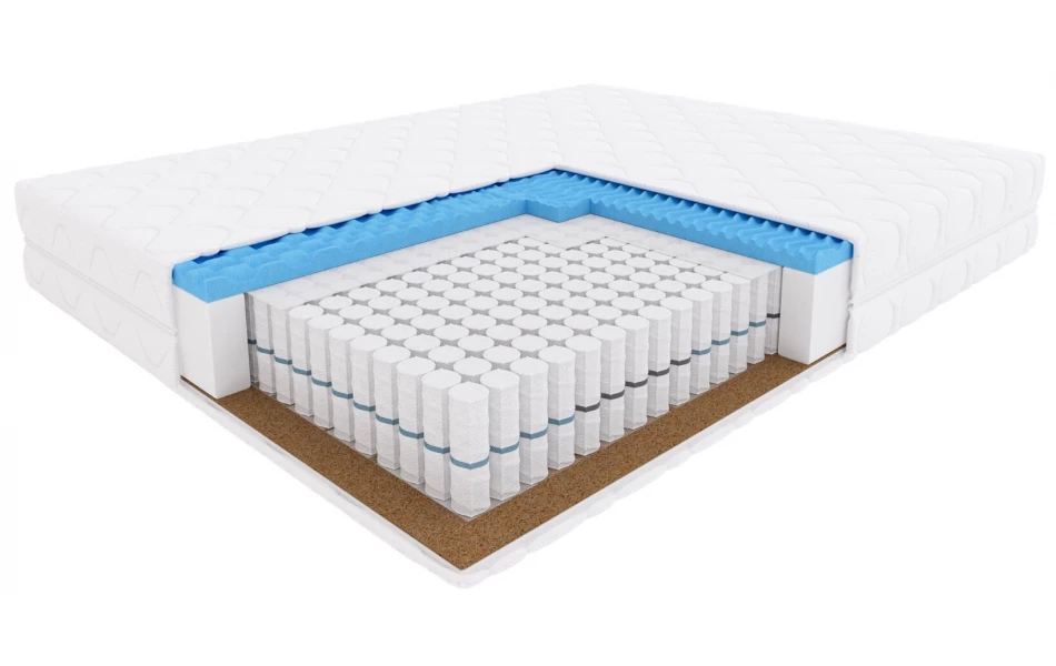 - Naturalny wkład kokosowy wykonany z włókien kokosowych lateksowanych mleczkiem kauczukowym, zwiększa twardość, trwałość i przewiewność materaca.