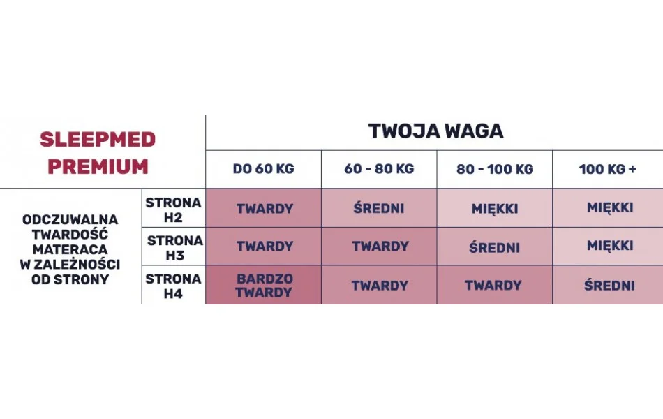 Przedstawiona poniżej skala prezentuje poziom twardości w zależności od strony, na której leży użytkownik