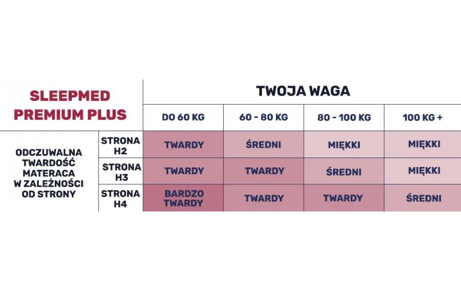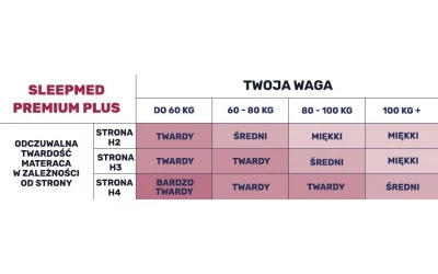 - po pierwsze - materac SleepMed Premium Plus jest dwustronny, a każda strona posiada inną twardość.