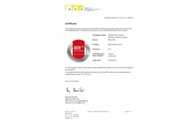 - certyfikat jakości szwajcarskiego instytutu AEH,
