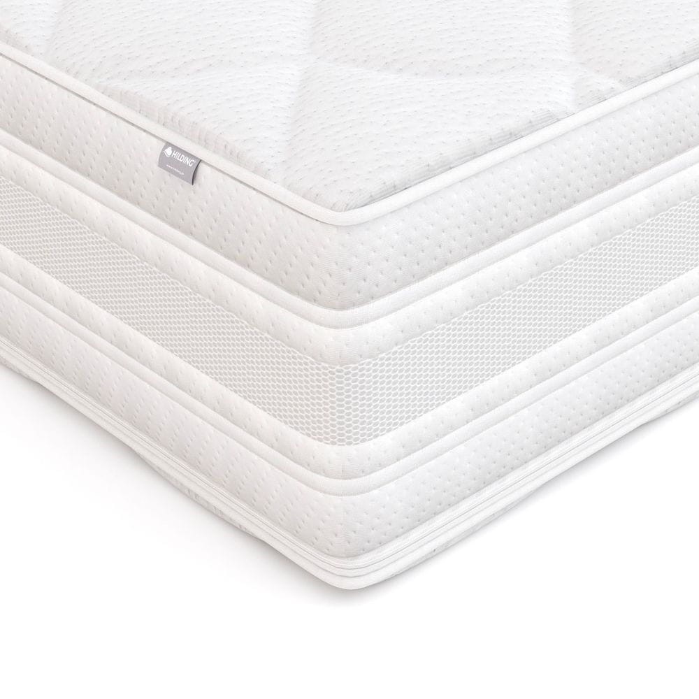Model Hilding BOOGIE składa się z kilku warstw. Bazę stanowi twarda pianka wysokoelastyczna, która zapewnia 7 stref twardości. Kolejną warstwę tworzy blat lateksu – ma on właściwości antybakteryjne, a poza tym zapewnia optymalną sprężystość. Wierzchnia warstwa to pianka FloFom, która delikatnie chłodzi, a przez to wspomaga regenerację.