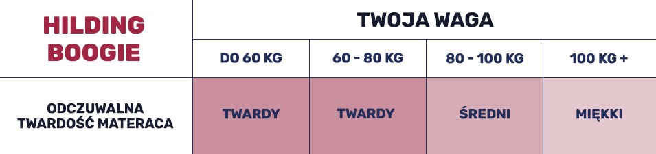 Model Hilding BOOGIE odpowiada również na potrzeby aktywnych osób. Konstrukcja modelu gwarantuje odprężenie oraz przyspieszoną regenerację zmęczonych po wysiłku mięśni. Materac wyróżnia się zwiększoną twardością, dzięki czemu sprawdzi się też dla cięższych osób.