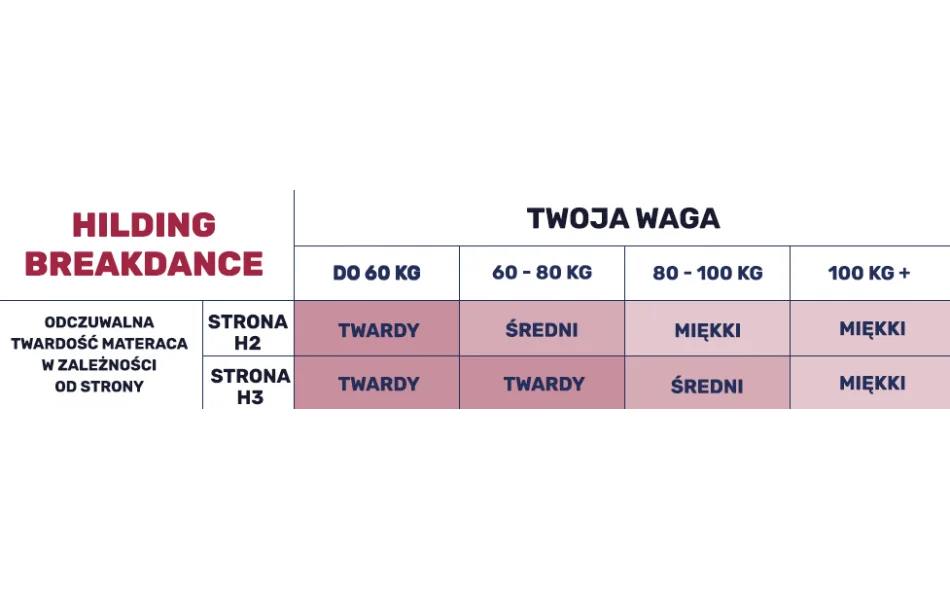 TWARDOŚĆ: H2 - średni / H3 - twardy