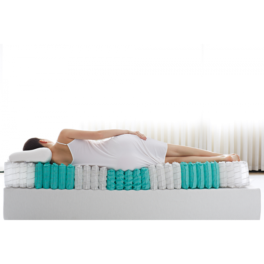 Bazę materaca hybrydowego tworzą sprężyny kieszonkowe poddawane długiemu procesowi hartowania. Dzięki temu są o wiele bardziej wytrzymałe od tradycyjnych sprężyn. Podział na siedem stref twardości zapewnia doskonałe podparcie kręgosłupa oraz odpowiednią ergonomię snu. Niezależna praca sprężyn minimalizuje przenoszenie drgań, przynosząc spokojny sen. Sprężyny obłożone są warstwami pian wysokoelastycznych (Feather, Hyper Roll i Support), które mają za zadanie utwardzić i wzmocnić konstrukcję materaca, a także nadać mu dodatkowej sprężystości.