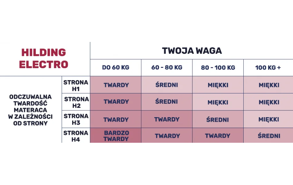 TWARDOŚĆ: H1 - miękki / H2 - średni / H3 - twardy / H4 - bardzo twardy