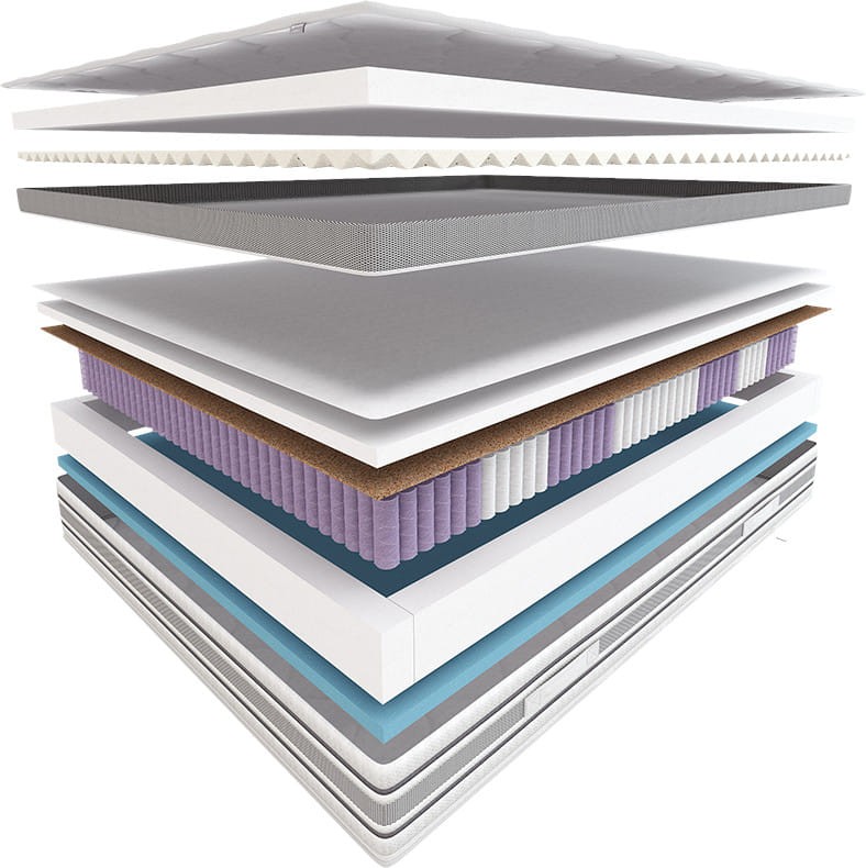 Kieszeniowy materac główny zawiera wydajny mechanizm multipocket ułożony na podstawie z trzycentymetrowej warstwy pianki wysokoelastycznej i przykryty cienką warstwą sizalu. Całość zwieńczona jest warstwą hybrydowej pianki Fusion o wysokości 3 cm. Top przymocowany do materaca za pomocą wygodnego zamka błyskawicznego wykonano natomiast z profilowanego lateksu i pianki termoelastycznej. Całość ma 31 cm wysokości, co gwarantuje najwyższy poziom komfortu.