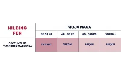 To kolejne pytanie, na które nie ma jednej odpowiedzi. Poziom twardości materaca powinien być dostosowany do wagi, postury i preferencji osób, które na nim śpią. Materac nie może być ani zbyt twardy (to nieprawda, że twarde podłoże snu jest zdrowsze!), ani zbyt miękki. Przykładowo, dla osoby, która waży 40 kg materac o średnim poziomie twardości może być stanowczo zbyt twardy, ale dla osoby, która waży 90 kg ten sam model może być absolutnie zbyt miękki.