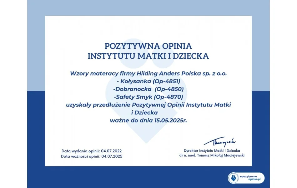 pozytywna opinia Instytutu Matki i Dziecka