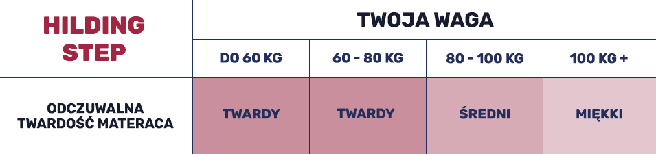 Każda część ciała otrzymuje dokładnie takie wsparcie, jakiego potrzebuje, co zapewnia zdrową pozycję kręgosłupa i może pomóc w niwelowaniu bólu pleców. Tworzące wkład materaca sprężyny mają zróżnicowaną twardość, dzięki czemu produkt Hilding Step ugina się odpowiednio do różnej siły nacisku wywieranej przez poszczególne partie ciała.