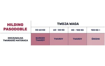 Twardość materaca Hilding Pasodoble na poziomie H4 zapewnia solidne podparcie całego ciała podczas odpoczynku.