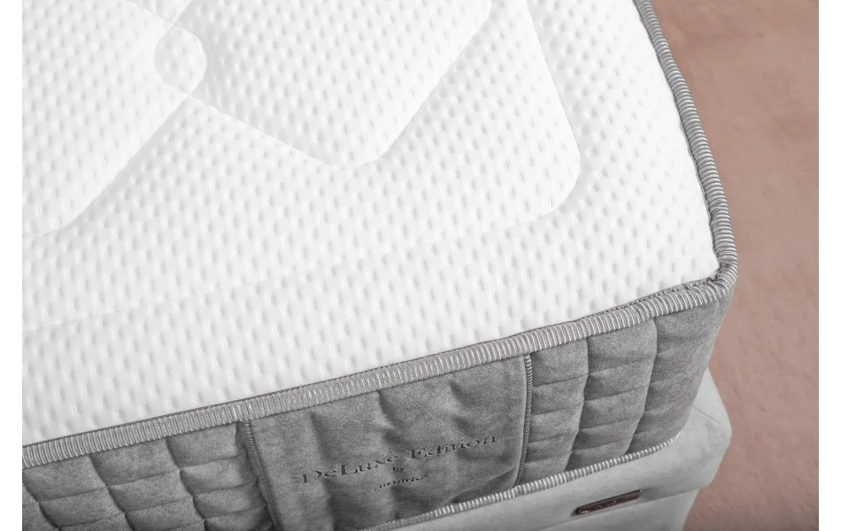Pokrowiec Baroque - pikowana powierzchnia z jedwabistego Cashmere, zapewniającego izolację cieplną i przeciwdziałającego alergenom. Miękkie, welurowe boki z efektownymi przeszyciami tworzą elegancką strukturę, a jasnobeżowy kolor dodaje wyrafinowanego stylu. Innowacyjny materiał 3D na spodzie materaca zapewnia swobodny przepływ powietrza. Zalecamy stosowanie ochraniacza wodoodpornego, ponieważ pokrowiec nie jest przeznaczony do prania.