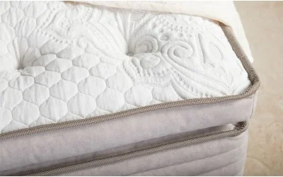 Pokrowiec Baroque - prezentuje ekstrawagancki charakter z miękkim pluszem i ornamentami, tworząc gruby Pillow Top z lateksu i miękkiej włókniny. Dzięki technologii Adaptive® reguluje temperaturę, a Purotex+ redukuje alergeny. Boki z welurowej tkaniny w jasno beżowym kolorze nadają elegancji, a innowacyjny spód zapewnia swobodny przepływ powietrza wewnątrz konstrukcji. Zalecamy stosowanie ochraniacza wodoodpornego, ponieważ pokrowiec nie jest przeznaczony do prania.