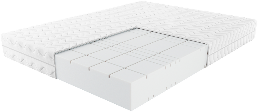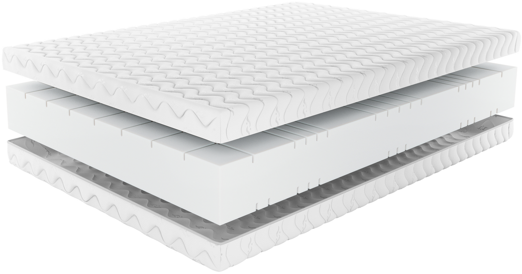 Wysokoelastyczna pianka HR Ultra White profilowana w 7 stref twardości, o gęstości 30 kg/m³.