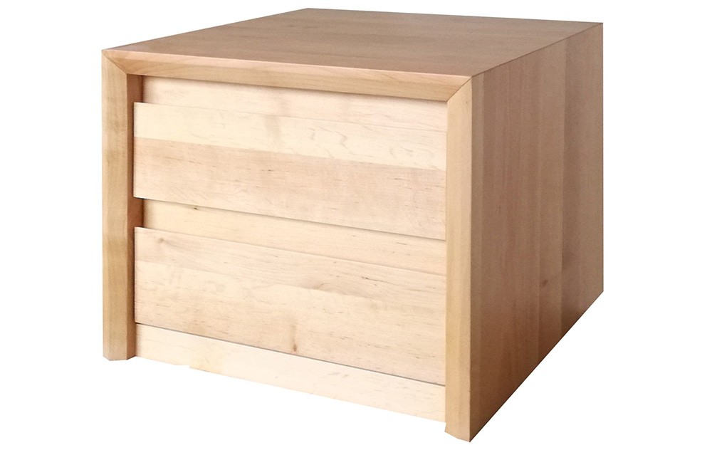 Wolnostojącą szafka nocna M-Form wykonana może być z litego drewna olchowego lub dębowego. Pod blatem posiada dwie szuflady zamontowane na prowadnicach kulkowych z cichym domykiem. Frezowane fronty szuflad ułatwiają ich wysuwanie i zamykanie. Szafka M-Form w całości wykonana jest z naturalnego drewna, dzięki czemu jest elegancka, wytrzymała i pasuje do praktycznie każdego wystroju wnętrza.