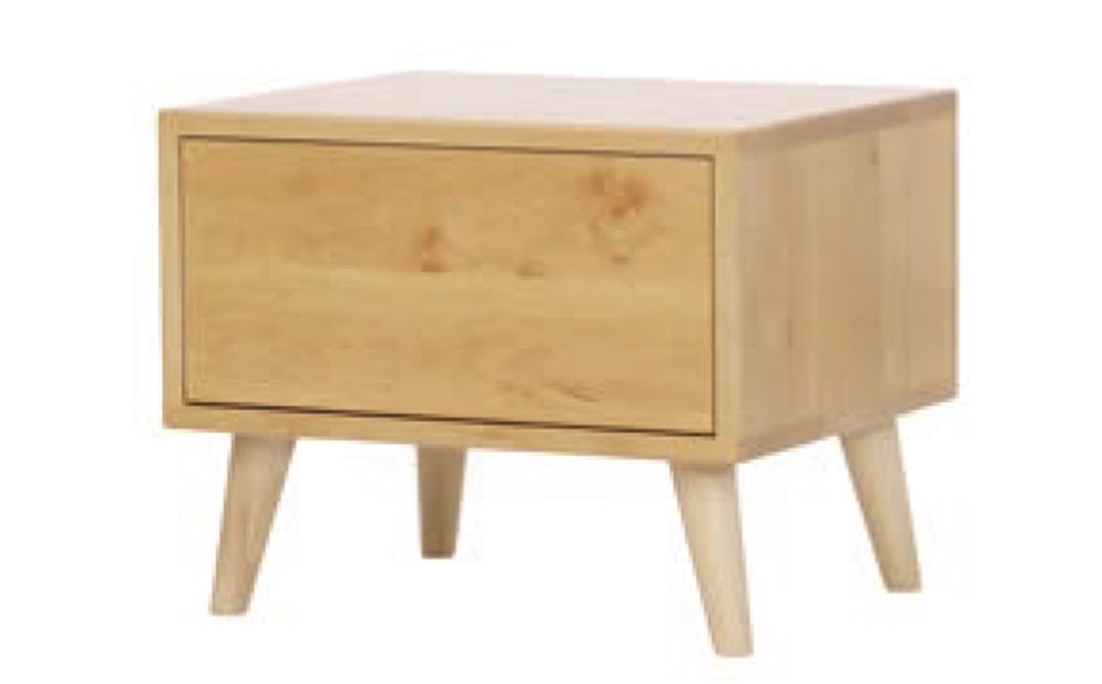 Szafka nocna R-Form z szufladą i półką wykonana jest z olchowego lub dębowego drewna.