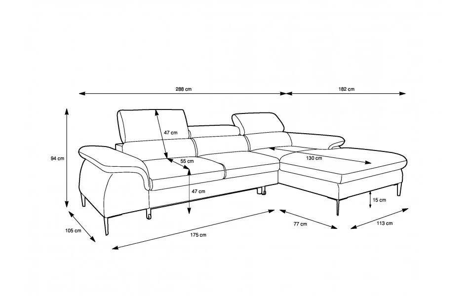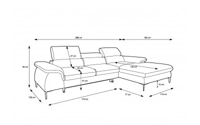 Wymiary (279/212cm) pow.spania (190/124 cm) H=75-94 cm