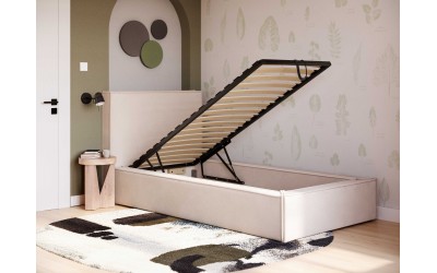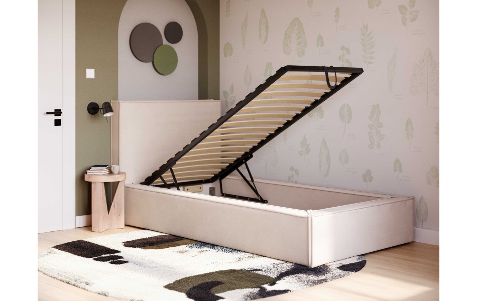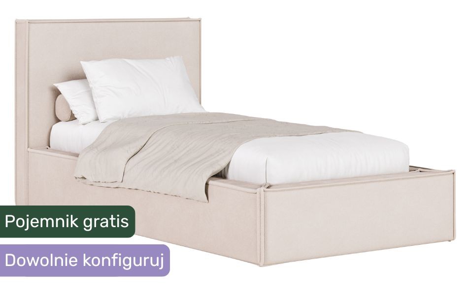 KOMPLETNY ZESTAW - Łóżko jest w zestawie z pojemnikiem na pościel i stelażem.