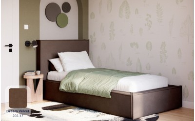 Łóżko młodzieżowe ERIS to nowoczesna propozycja do pokoju nastolatka. Prosta forma, tapicerowane wykończenie i stonowana kolorystyka sprawiają, że doskonale wpisuje się w różne aranżacje wnętrz. Solidna konstrukcja i wygodne oparcie zapewniają komfort zarówno do snu, jak i do wypoczynku w ciągu dnia.