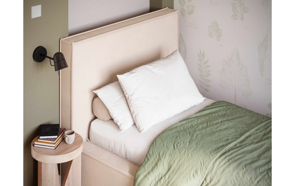 Dzięki prostemu konfiguratorowi stworzysz swoje wymarzone łóżko w kilka chwil. Wybierz kolor i rodzaj tkaniny. Określ wysokość wezgłowia - pozwoli Ci to dopasować łóżko w mniej ustawnej przestrzeni lub zapewnić sobie wygodne oparcie w czasie wieczornego relaksu.