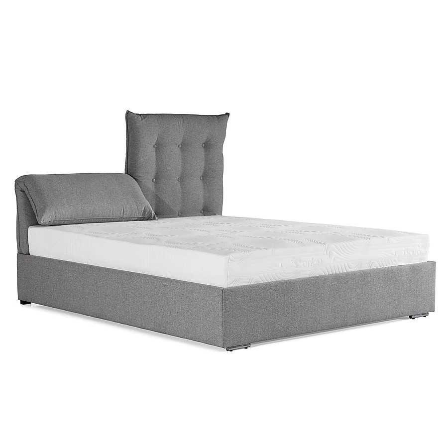Łóżko tapicerowane Simeone w bardziej standardowej wersji wyposażone może być w elastyczny listwowy stelaż na materac. Możesz też wybrać opcję, w której wbudowany do niego będzie pojemnik na pościel lub dwupozycyjny pojemnik na pościel z funkcją ścielenia dla jeszcze większej wygody.