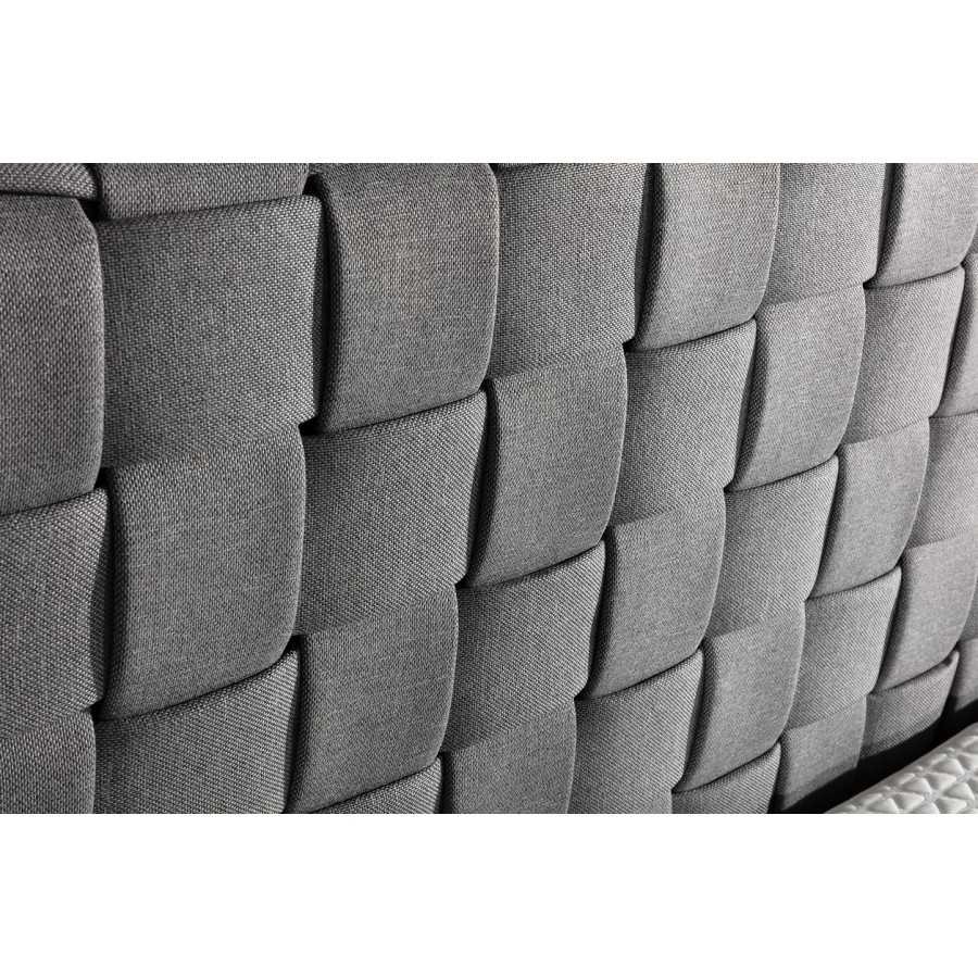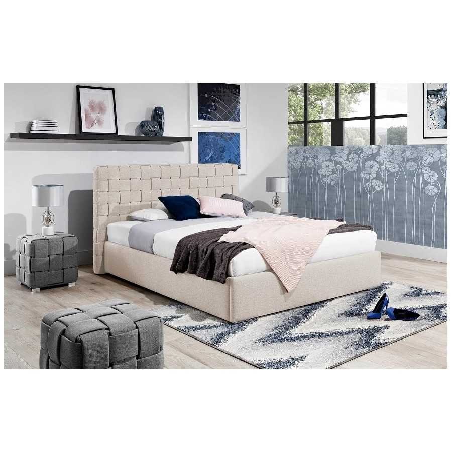 Łóżko tapicerowane Plecionka na prezentowanym zdjęciu wykonane jest w tkaninie z grupy I.